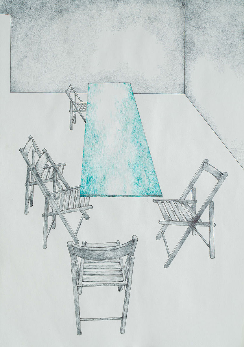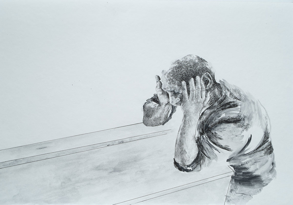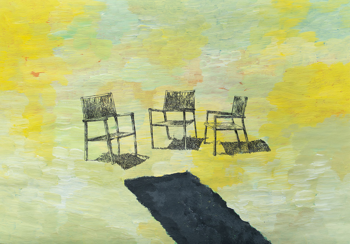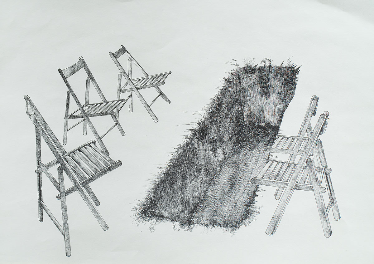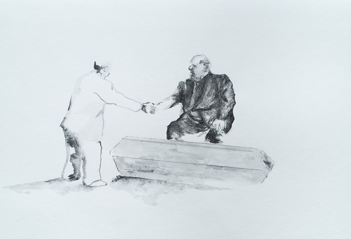 Izvedbom performansa kao simboličkog čina, Klobučar će pništiti koncept uobičajenog otvorenja izložbe na kojem se okuplja publika i vlada žamor. Sjedeći u tišini on ukazuje na misaonu odsutnost u rascjepu između života i smrti, iskazujući uznemirenost vlastitim strahom, pa time sebe stavlja u poziciju medijatora između smrti i straha.