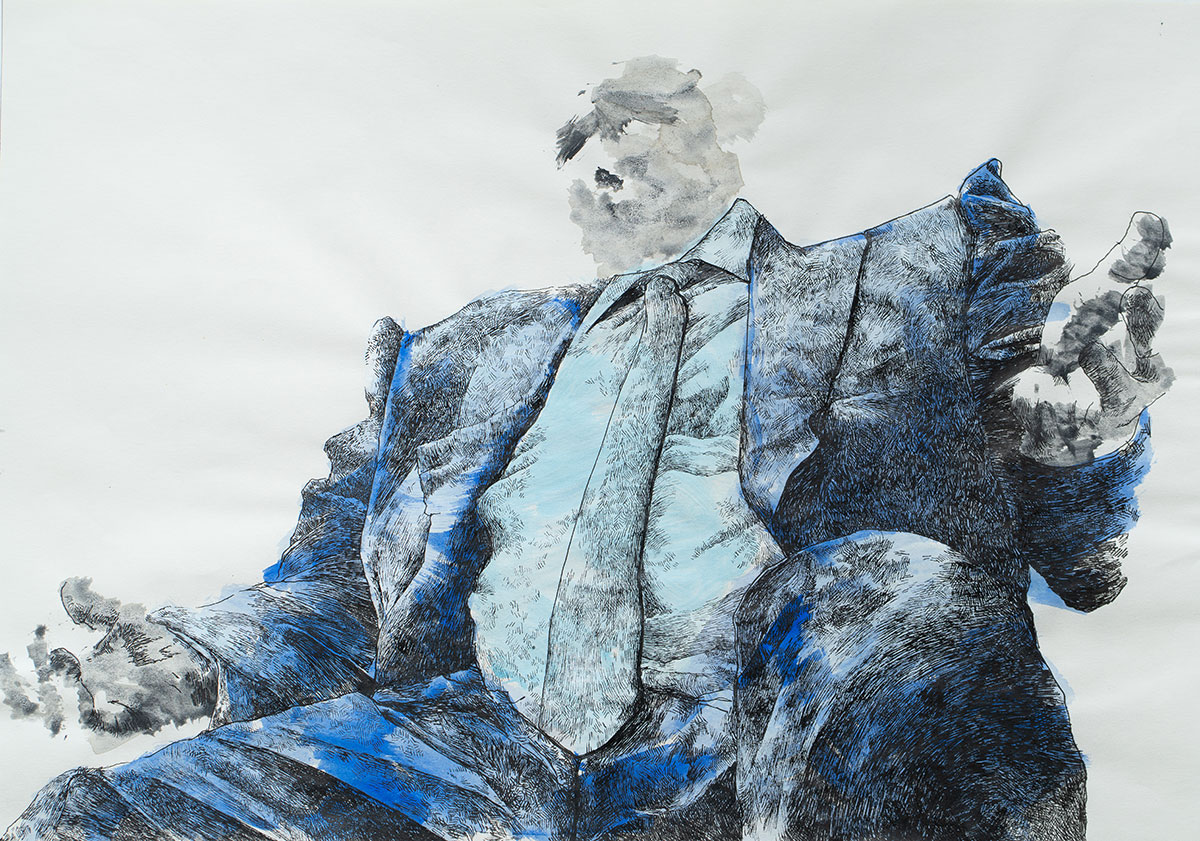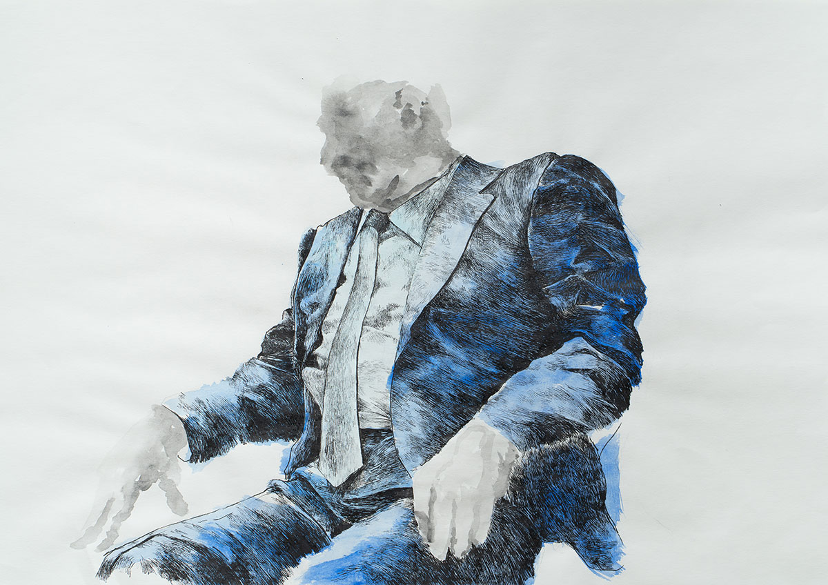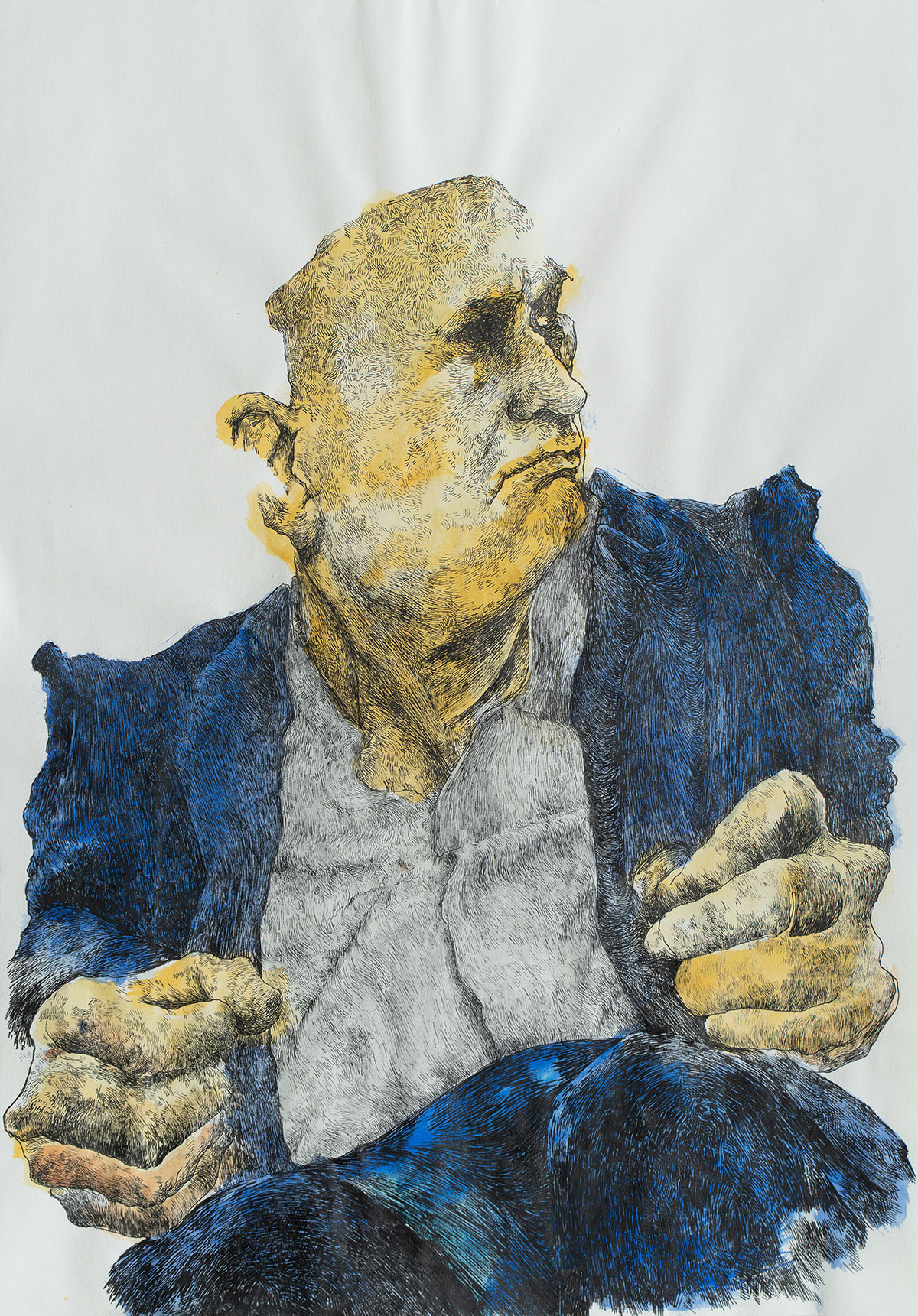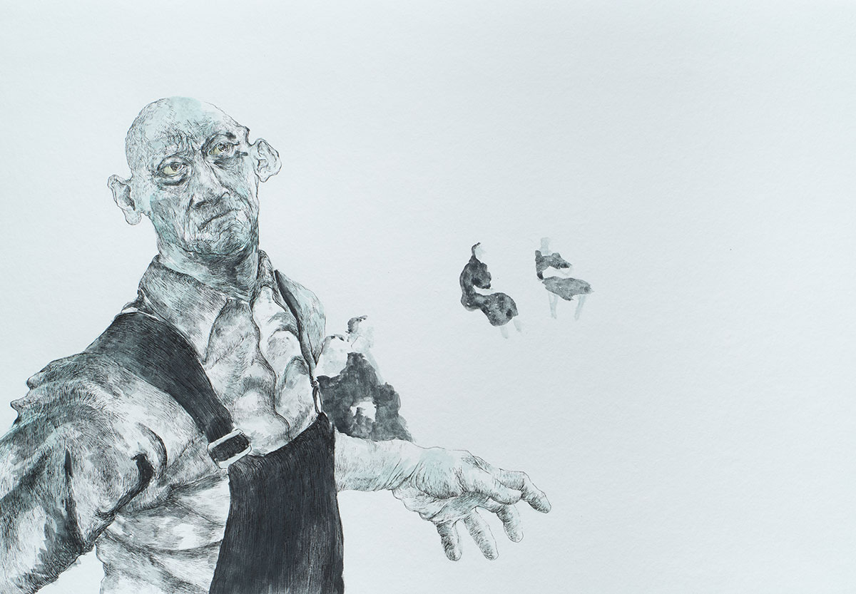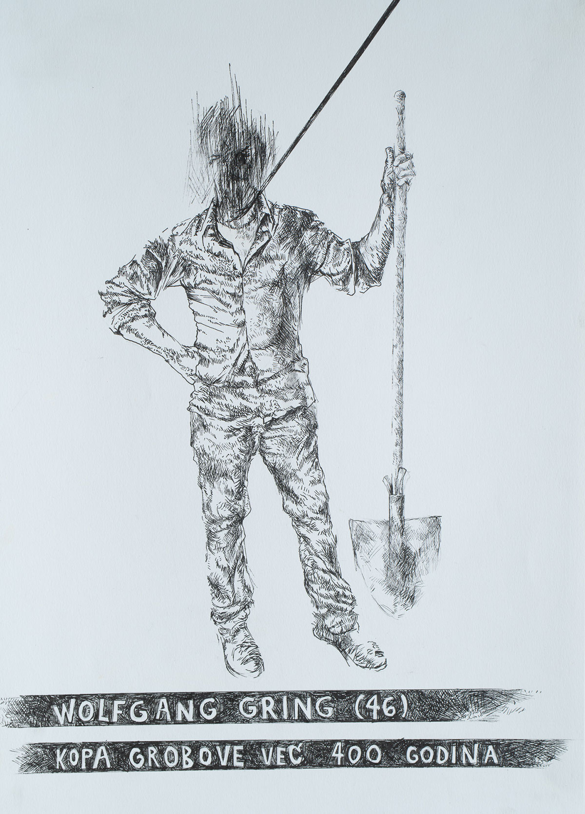 U tom nijemom dijalogu između Klobučarovih crteža s već prepoznatljivim likovima iz njegova privatnog danse macabrea i radova starih majstora iz Zbirke Benka Horvata, zaustavljenih u davno proteklom, gotovo zaboravljenom trenutku, umjetnik je samo prisutan, kao nelagoda i strah. Bez izražene dinamike i geste, koja je tek nagovještena u lagano uzdignutoj ljevici, poput lika na izloženom bakropisu Čovjek iz naroda (Carla Antoninija, dio bakropisne serije Figurine Salvatora Rose, Rim, 1656./1657. godine), da bi navijestio svoju prisutnost, kao duh neprimjetno primjetan.