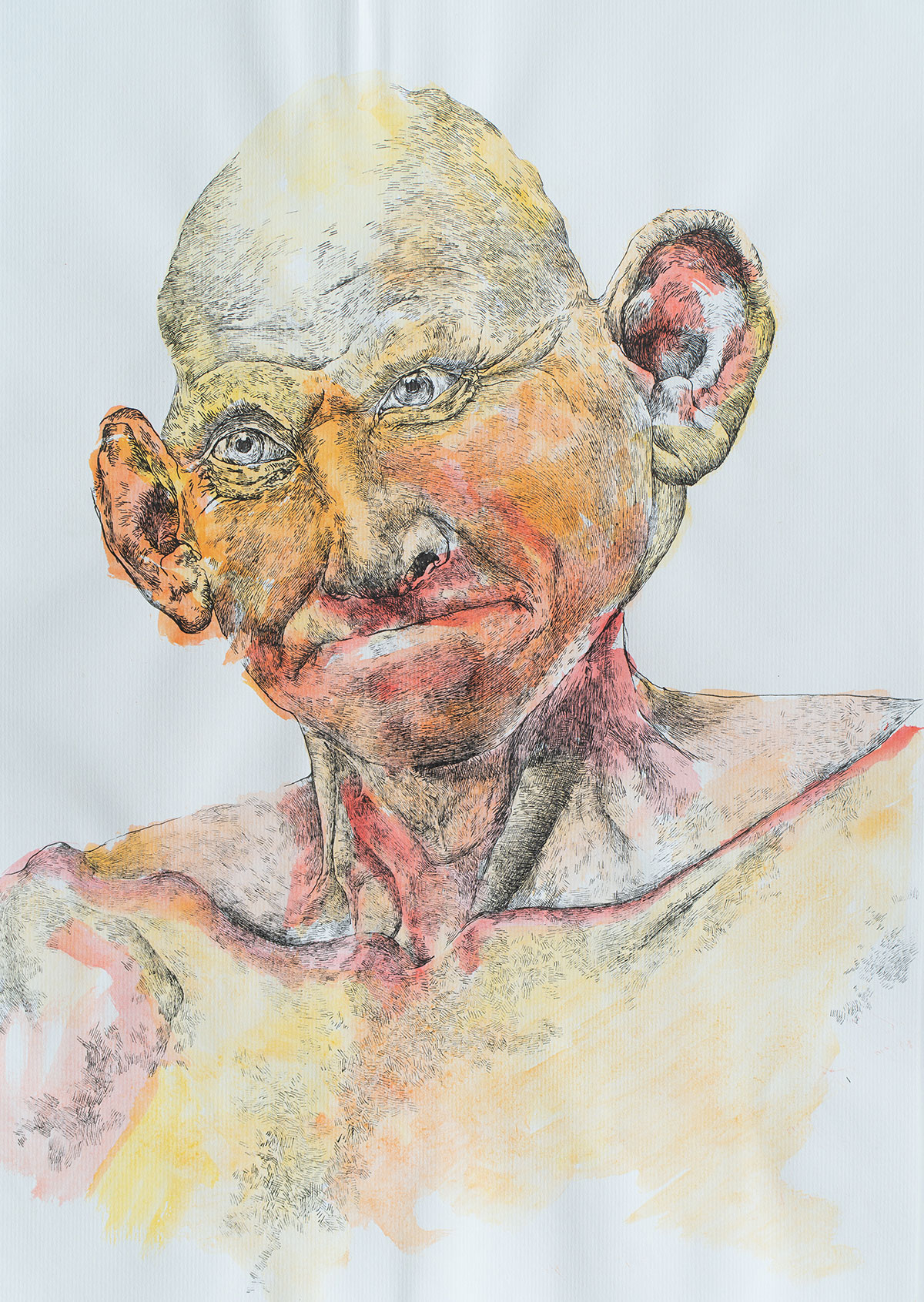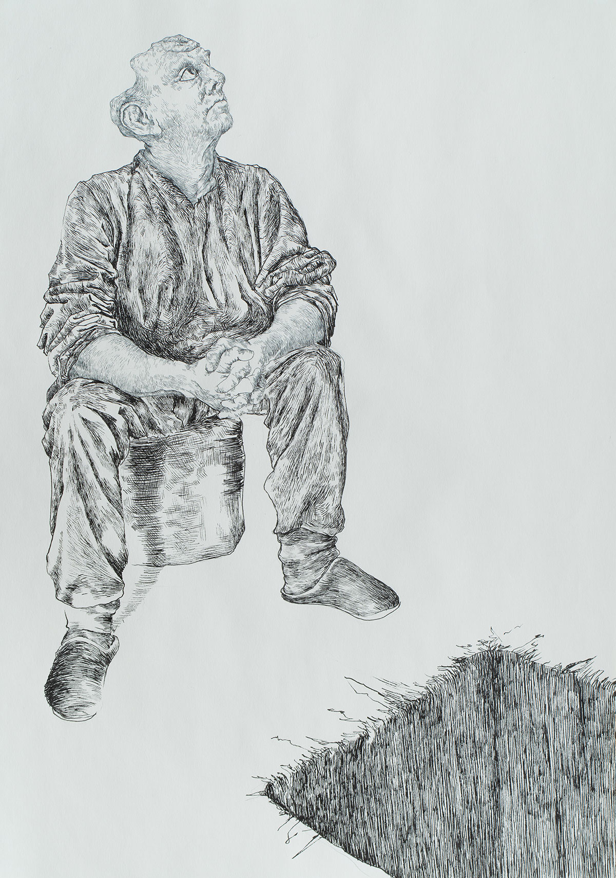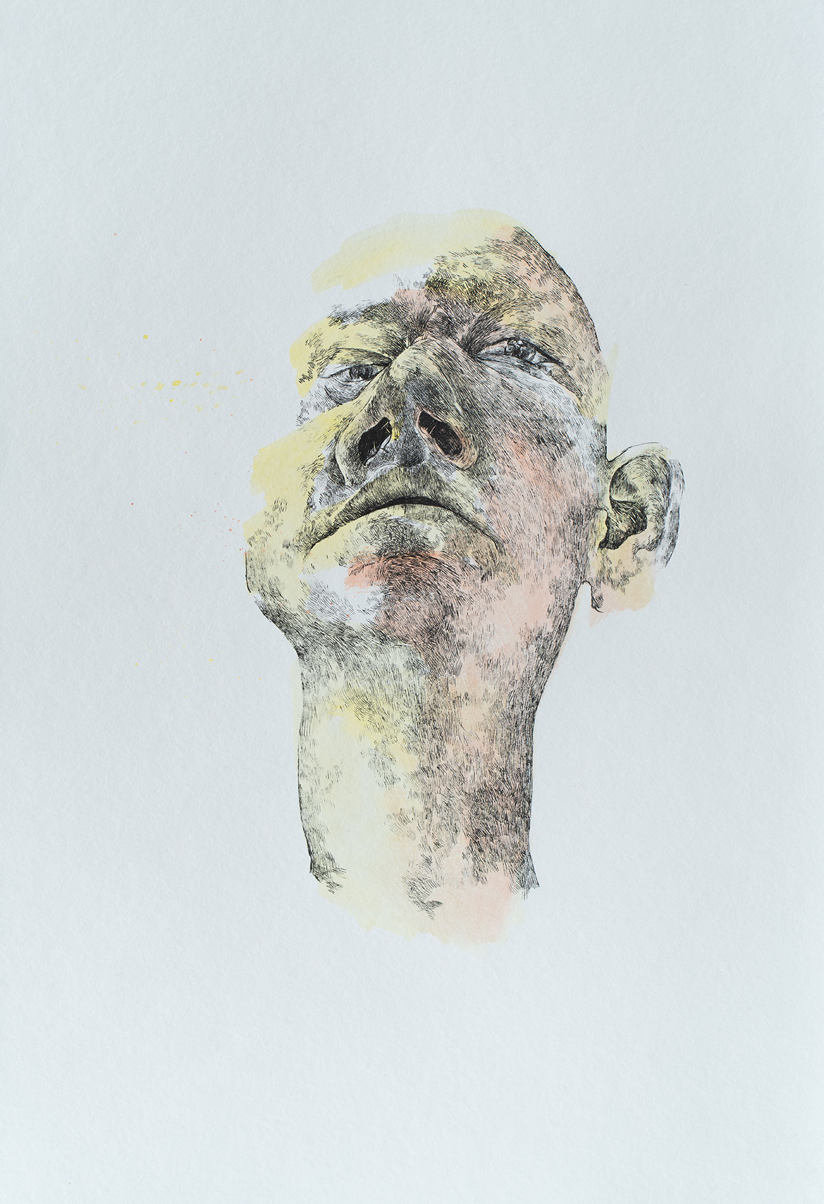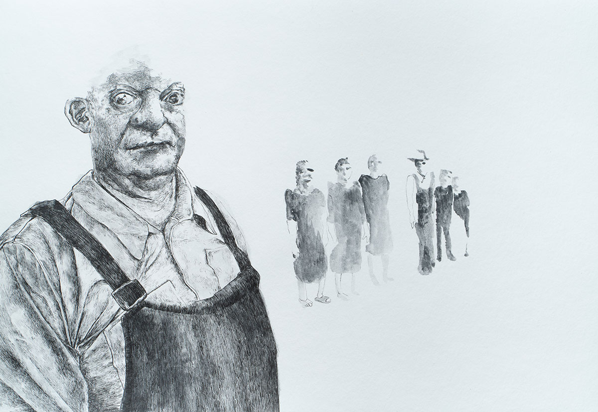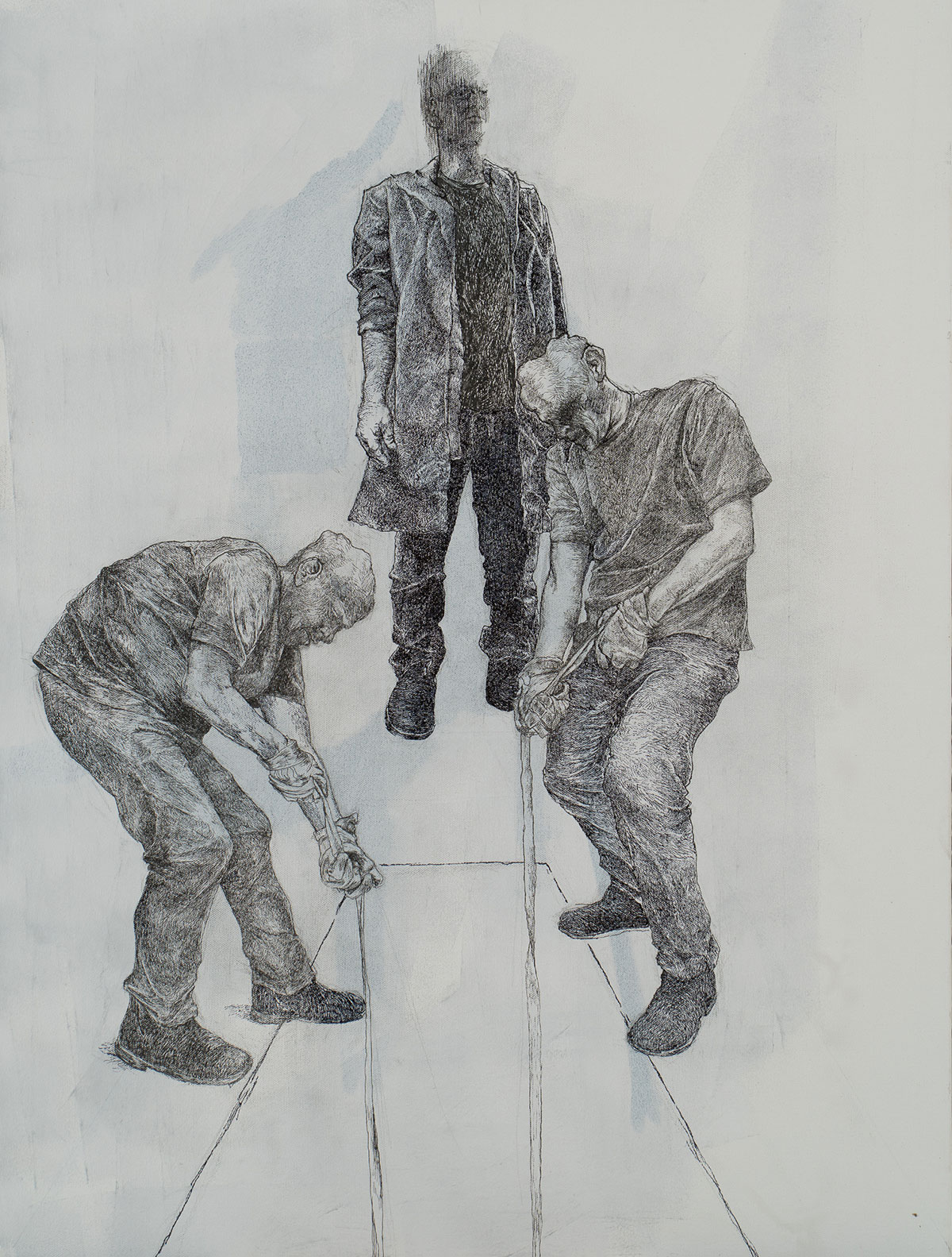 U tom nijemom dijalogu između Klobučarovih crteža s već prepoznatljivim likovima iz njegova privatnog danse macabrea i radova starih majstora iz Zbirke Benka Horvata, zaustavljenih u davno proteklom, gotovo zaboravljenom trenutku, umjetnik je samo prisutan, kao nelagoda i strah. Bez izražene dinamike i geste, koja je tek nagovještena u lagano uzdignutoj ljevici, poput lika na izloženom bakropisu Čovjek iz naroda (Carla Antoninija, dio bakropisne serije Figurine Salvatora Rose, Rim, 1656./1657. godine), da bi navijestio svoju prisutnost, kao duh neprimjetno primjetan.