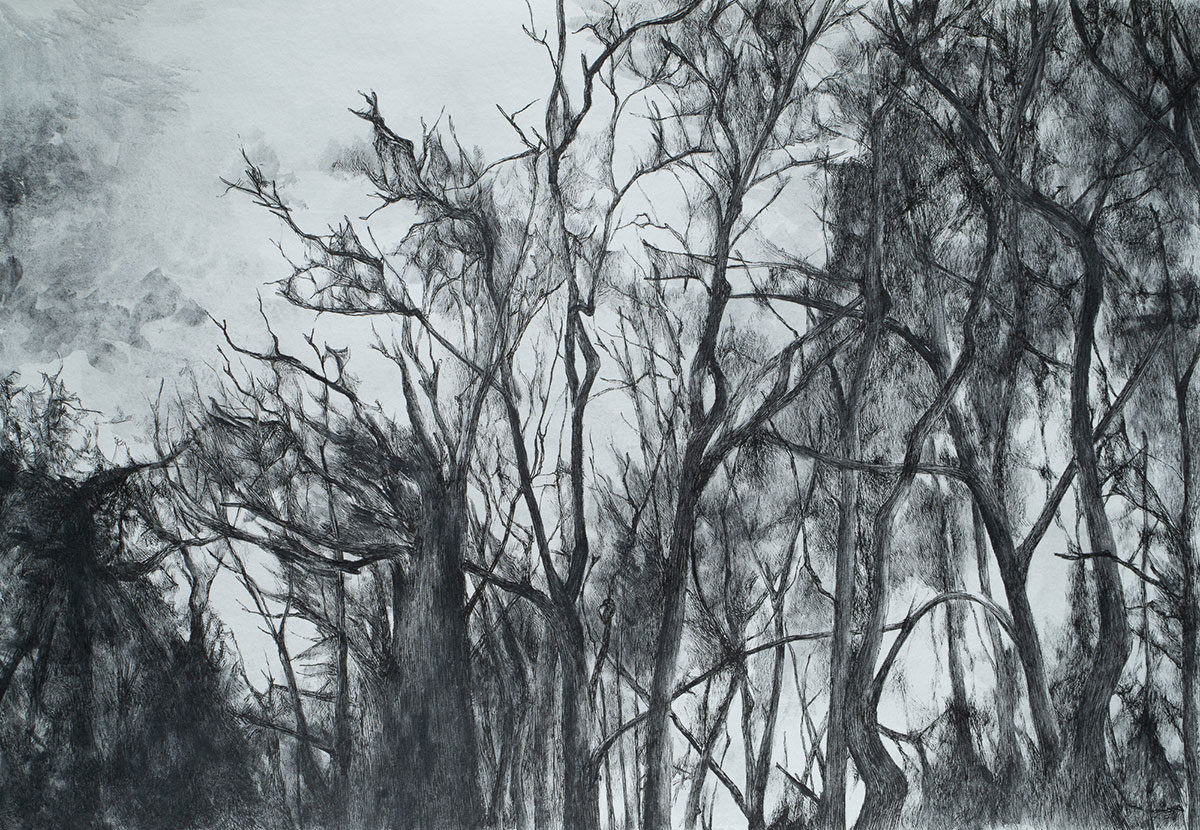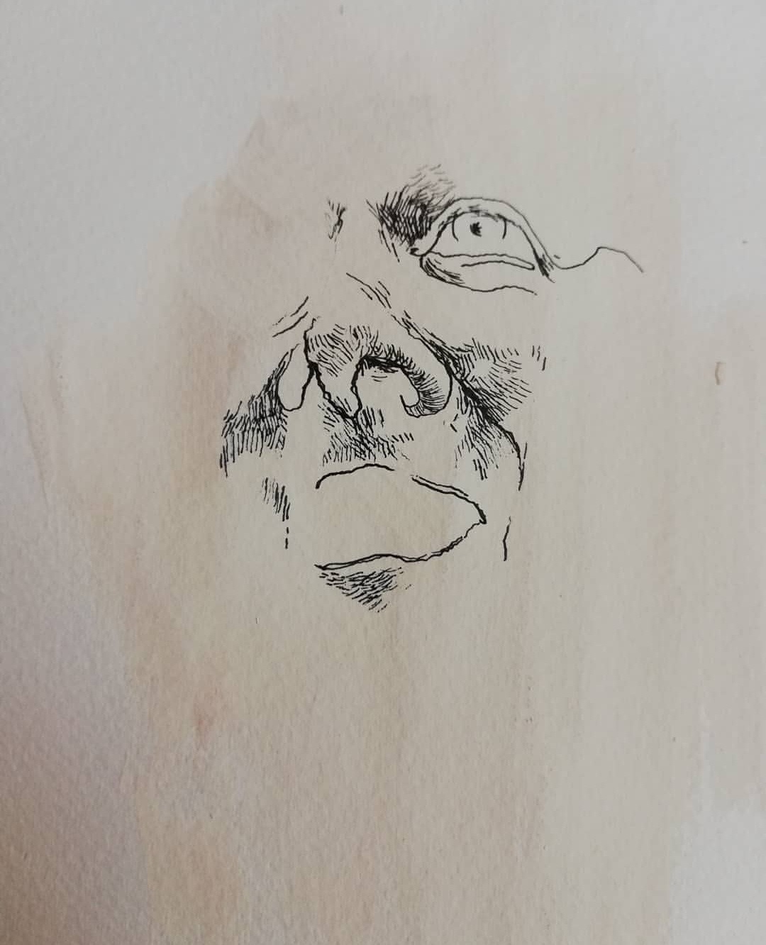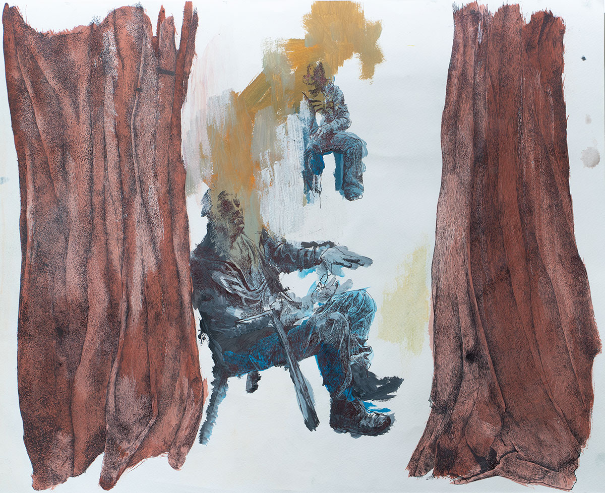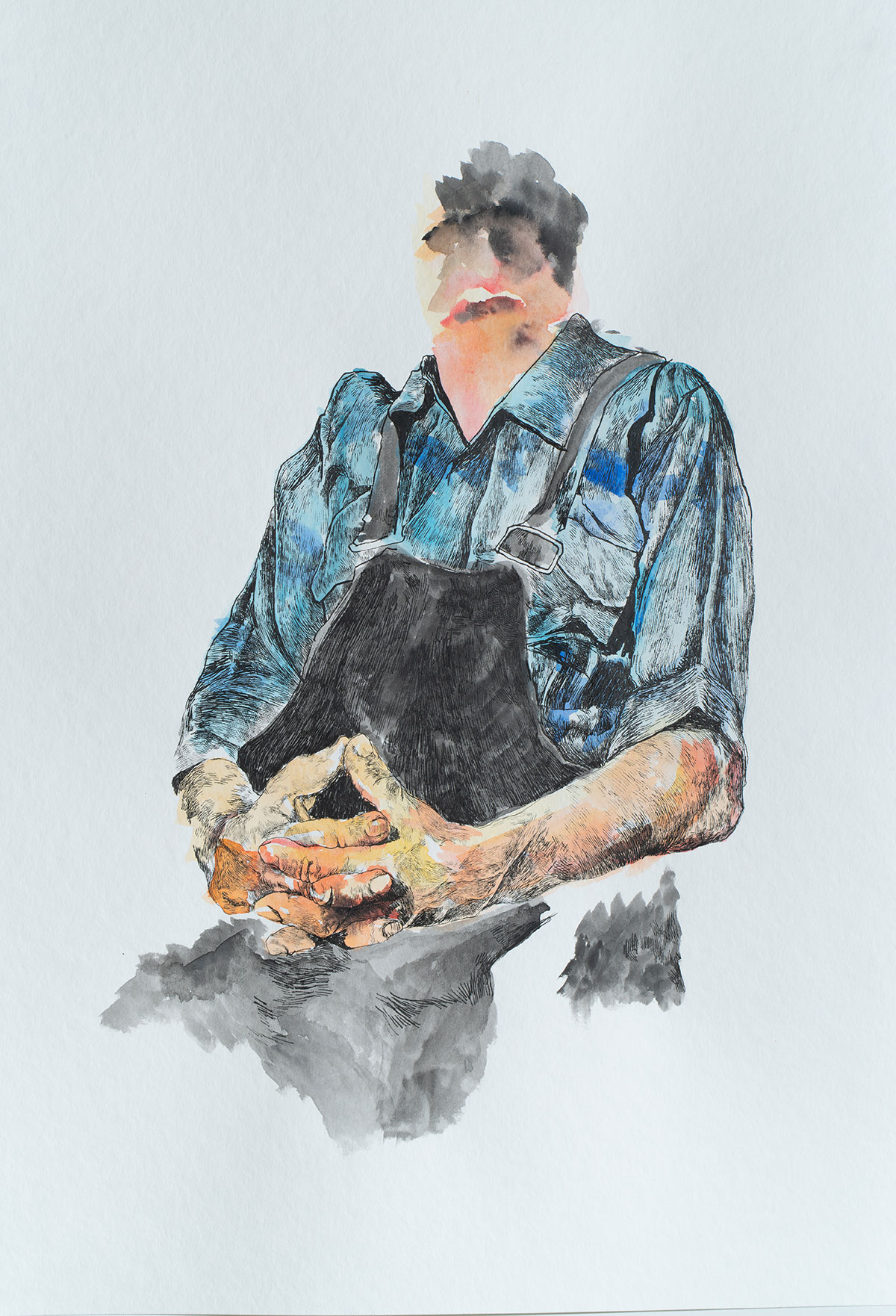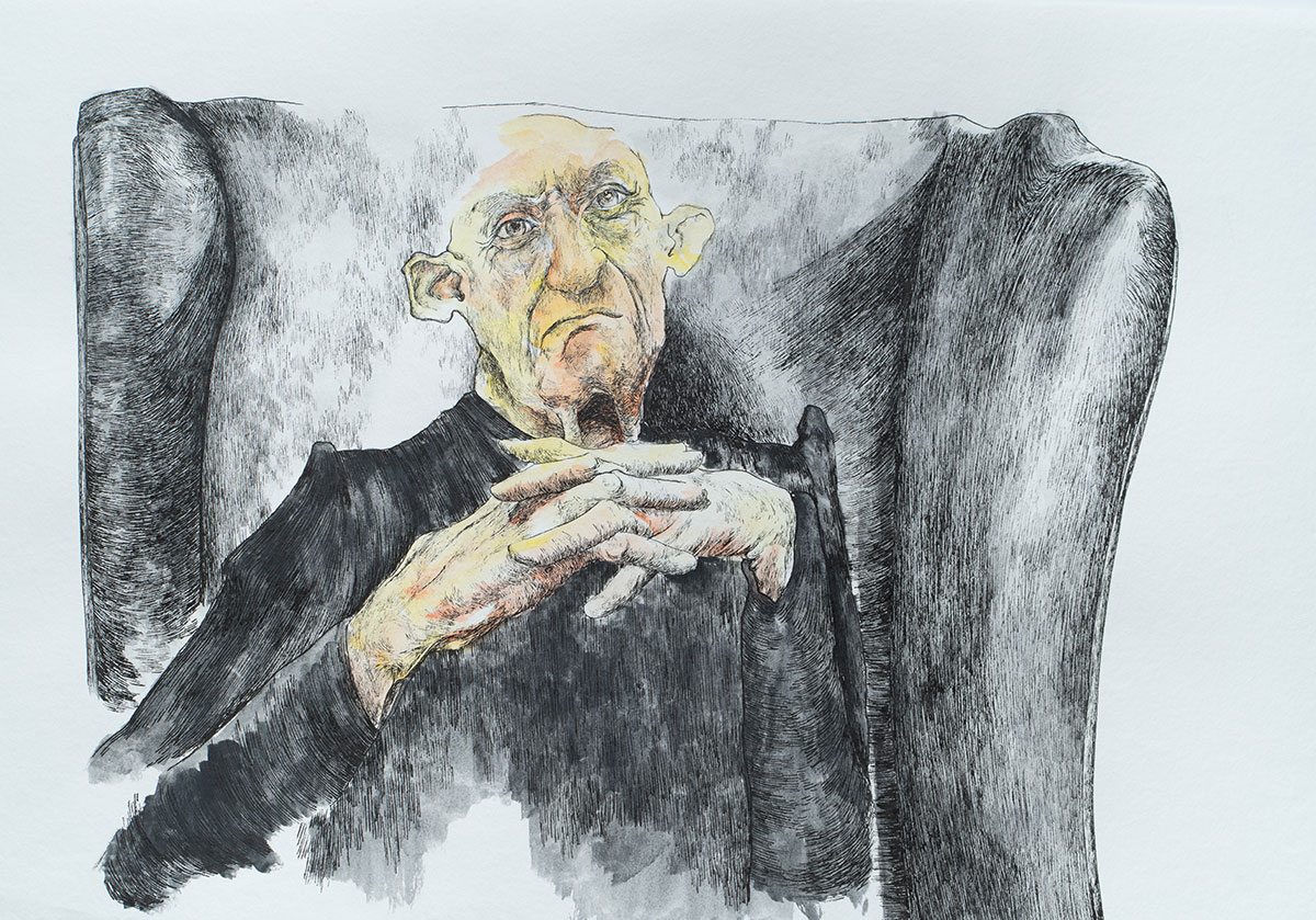 U tom nijemom dijalogu između Klobučarovih crteža s već prepoznatljivim likovima iz njegova privatnog danse macabrea i radova starih majstora iz Zbirke Benka Horvata, zaustavljenih u davno proteklom, gotovo zaboravljenom trenutku, umjetnik je samo prisutan, kao nelagoda i strah. Bez izražene dinamike i geste, koja je tek nagovještena u lagano uzdignutoj ljevici, poput lika na izloženom bakropisu Čovjek iz naroda (Carla Antoninija, dio bakropisne serije Figurine Salvatora Rose, Rim, 1656./1657. godine), da bi navijestio svoju prisutnost, kao duh neprimjetno primjetan.