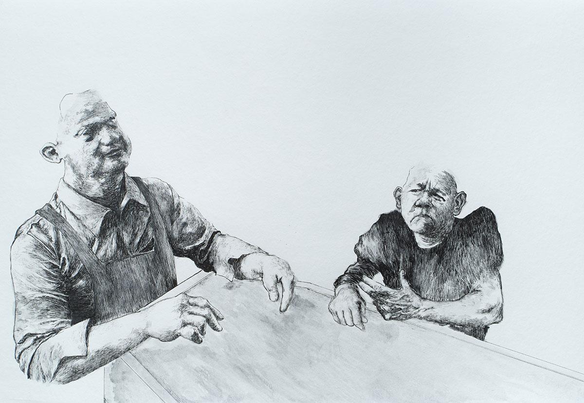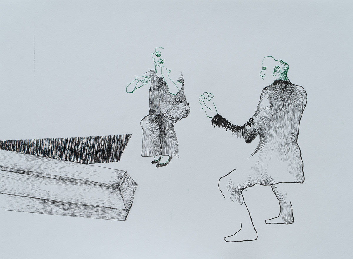 Budući da su smrt, agonija, duhovi pokojnika trajna inspiracija Svena Klobučara, tako je i njegov izbor radova “za dijalog” iz Zbirke Benka Horvata komplementaran: odabrao je ponajprije ljudske likove i minuciozne crteže.